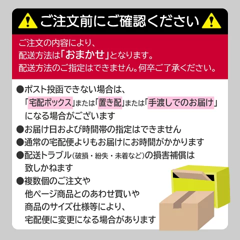 商品到着後7日以内に必ずご連絡ください。期限を過ぎますと、原則として返品・交換を承れません。